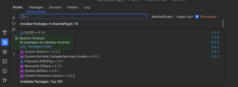Restore missing packages using Rider